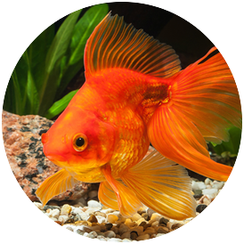 Very similar to the Oranda’s head shape and Fantail, but lacks a dorsal fin (the fin that runs down the back of a fish).